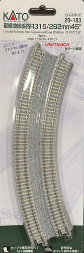 N - Kato 20-183 Concrete Tie Double Superelevated Curve R315/282-45° (2 pcs) N13207