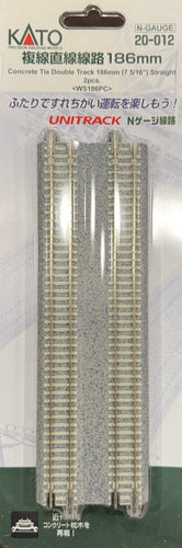 N - Kato 20-012 Concrete Tie Double Track 186mm (7 5/16") Straight (2 pcs) N13203