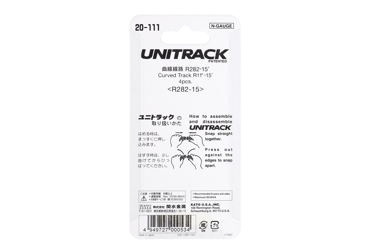 Kato 20-111 N R282-15 curved Track (4 ea) (11-15d) N11437