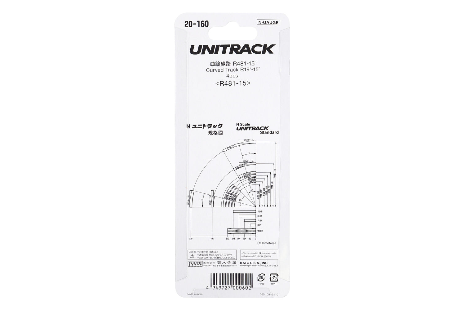 Kato 20-160 N R481-15 Curved Track (4 ea) (19-15d) N11467